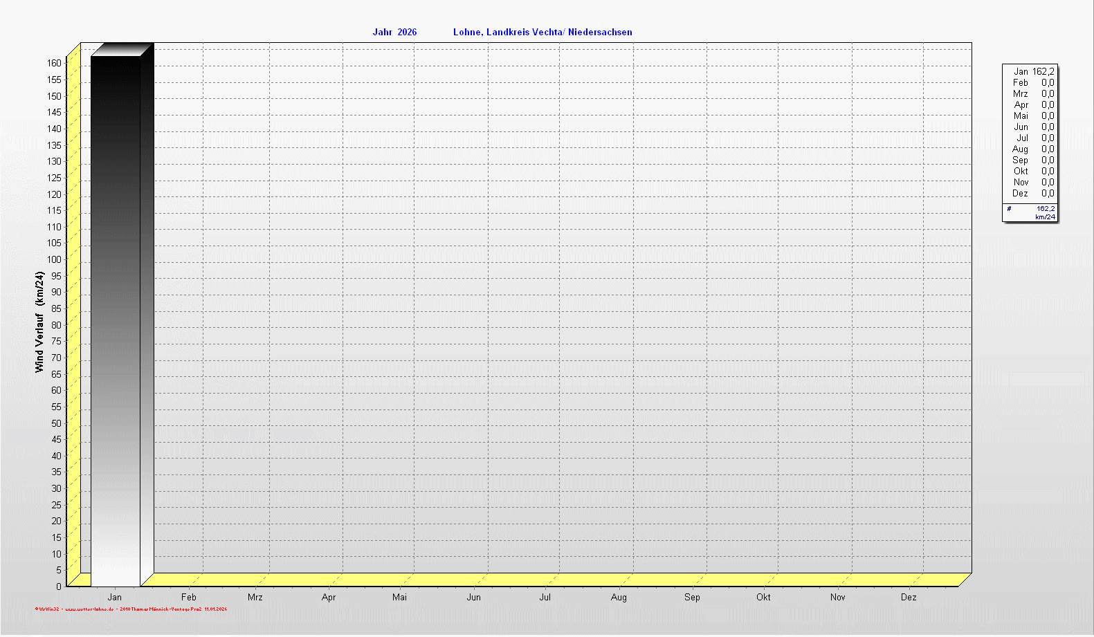 Im folgenden Bereich sehen Sie die Windaten der Aufzeichnungen als Balkendiagramme ...